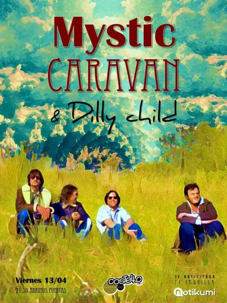Mystic Caravan estará acompañada de Dilly Child, el proyecto de Dilly Boy, compositor y frontman de Black Maracas. Dúo de garage-rock que con tan sólo una batería y guitarra nos sorprenderá con sonidos rocambolescos, o como ellos mismos se describen, «sonidos cavernícolas desde lo más profundo de tu pozo de los deseos».
