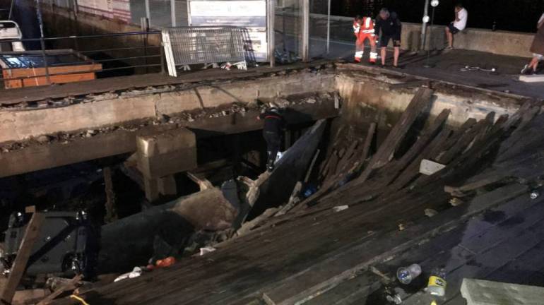 Para más inri, gran parte de este público cayó al mar, ya que la plataforma, como hemos comentado, estaba situada como cada año, en el paseo marítimo y no podían nadar al recibir el impacto de más personas que continuaban cayendo tras ellos, con una pasarela completamente colapsada. Una estructura de hormigón que cedió probablemente por un exceso de peso…
