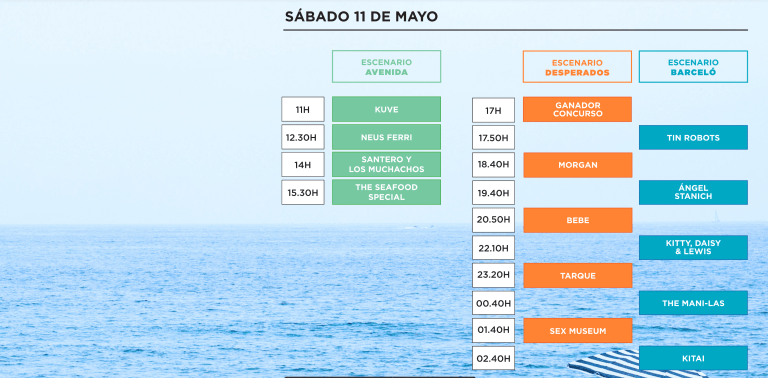 En la jornada del sábado, encontramos una propuesta doble, donde podremos disfrutar en el Escenario Avenida de cuatro artista en una jornada matinal, que calentará terreno para la espectacular noche que Tarque, Sex Museum o Kitai tienen preparada para el público de Xàbia.