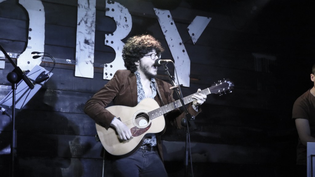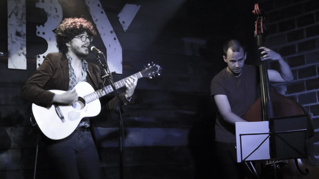 Después fue el turno de Ángel Calvo. Venía de arrasar en Salamanca y con la máquina bien carburada para repasar todo el repertorio de sus dos EP ‘Esperando Vol 1’ y ‘Vol 2’. Acompañado de Iván Escudero al contrabajo y Manu Clavijo al violín. La complicidad del público fue total desde la primera canción, con la habitual locuacidad del Sr. Calvo en cada intervención.
