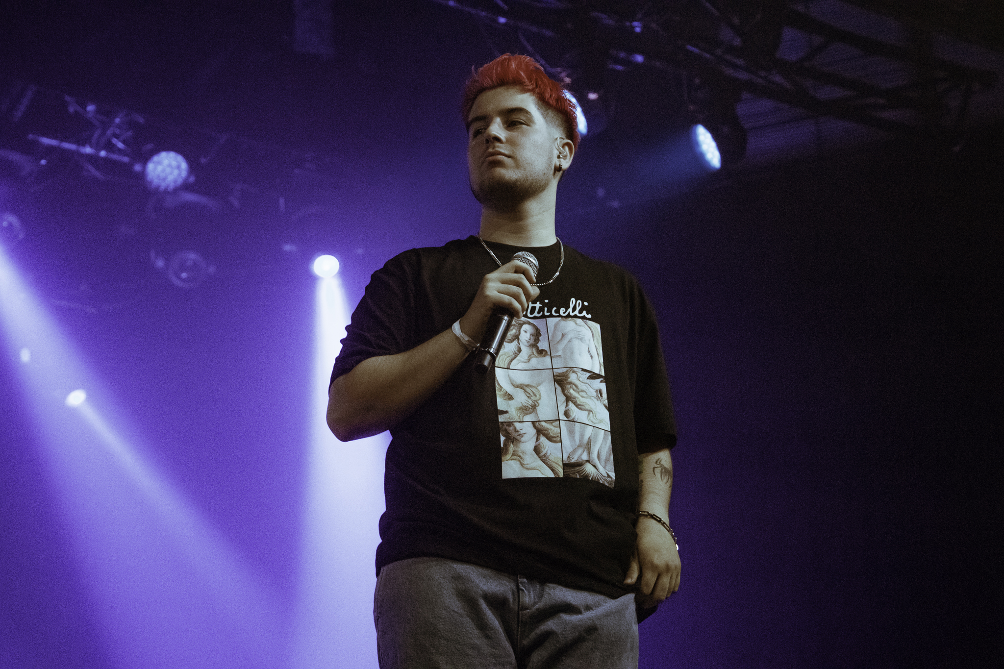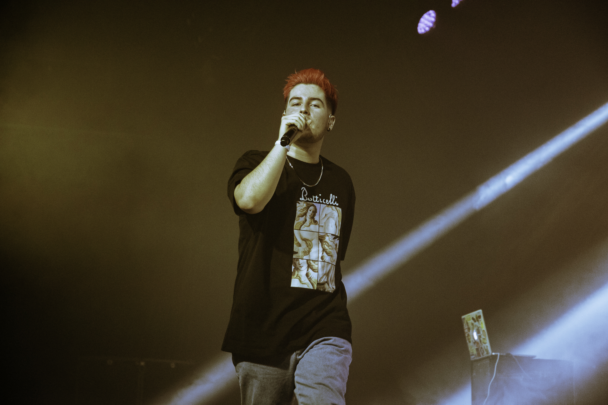 Una introducción nos desvelaba “No Quiero Verte”, tema que publicaba el pasado febrero y con el que demostraba estar abriéndose hacia un espectro sonoro mayor, controlando una base más rápida y compleja que en anteriores producciones, saludando a su dedicado público y dando paso a su vez a “Borracho”, sencilloque nos adelantaba el pasado año y que ha incorporado en su ‘Canciones Que Hice en Mi Habitación’.