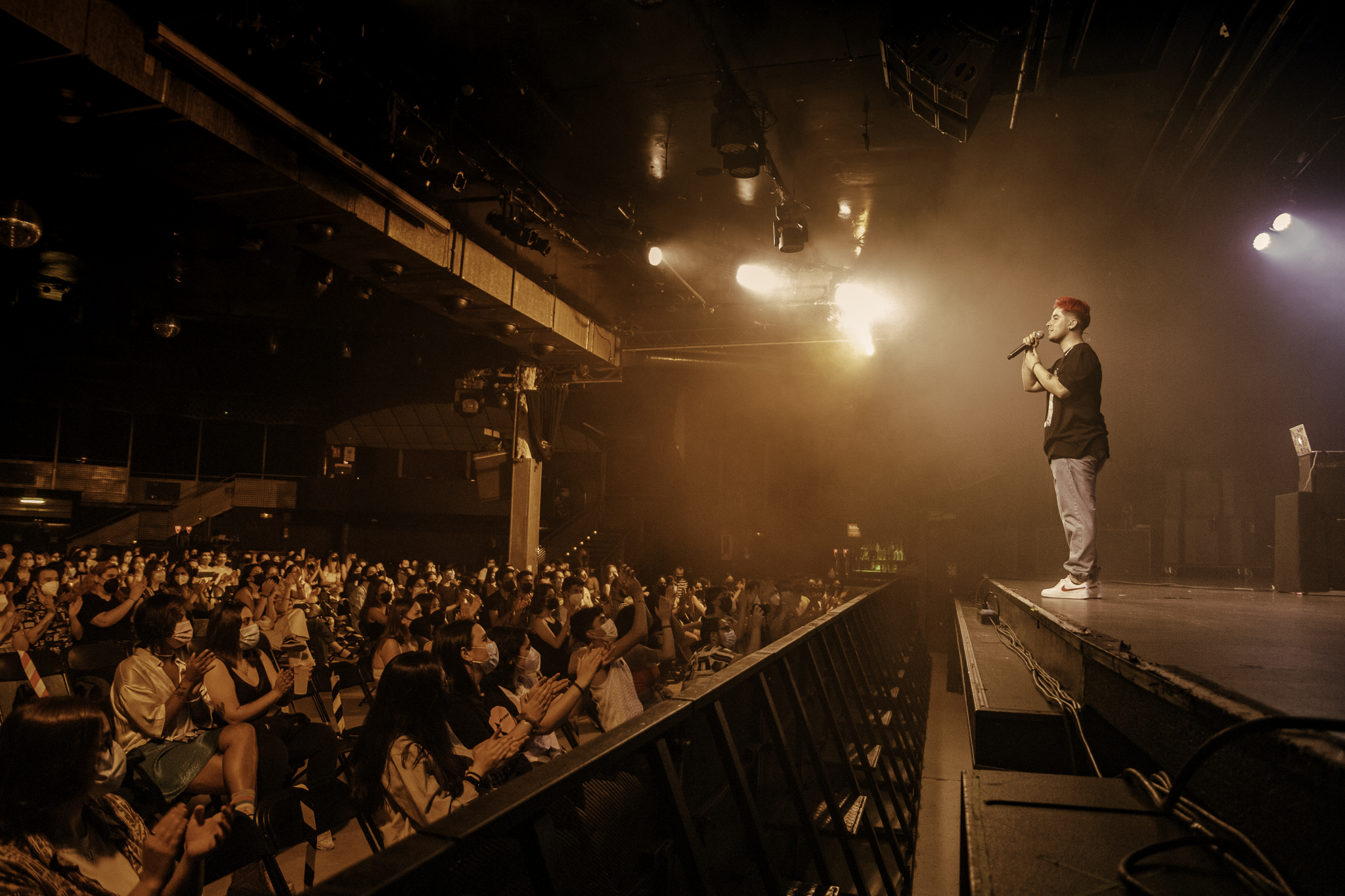 Después de este gracioso inciso, dedica un momento para explicar su álbum, del que dice ser un conjunto de canciones bedroom pop, desde la hacitación, pero con el objetivo de hacer un disco que tuviera un poco de todo, desde temas ligeros a emotivos o música algo mas rockera, influenciado por su amigo Daniel Sabater. Con ello, Sebastián tomaba la guitarra eléctrica, que acompañaría a la base lanzada desde su mac de 13” para interpretar “Quiéreme un Poco”. Le siguió lo que para él es la canción más rencorosa del disco, “Cuando Estabas Aquí” y uno de sus temas más conocidos “yo q se”, del que nos explicaba había compuesto tras salir “Nunca Estoy” de C. Tangana, en uno de los momentos más tristes de la cuarentena del pasado año.